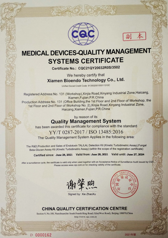 WFI বা ডায়ালাইসেটের জন্য পরিমাণগত এন্ডোটক্সিন অ্যাস সলিউশন